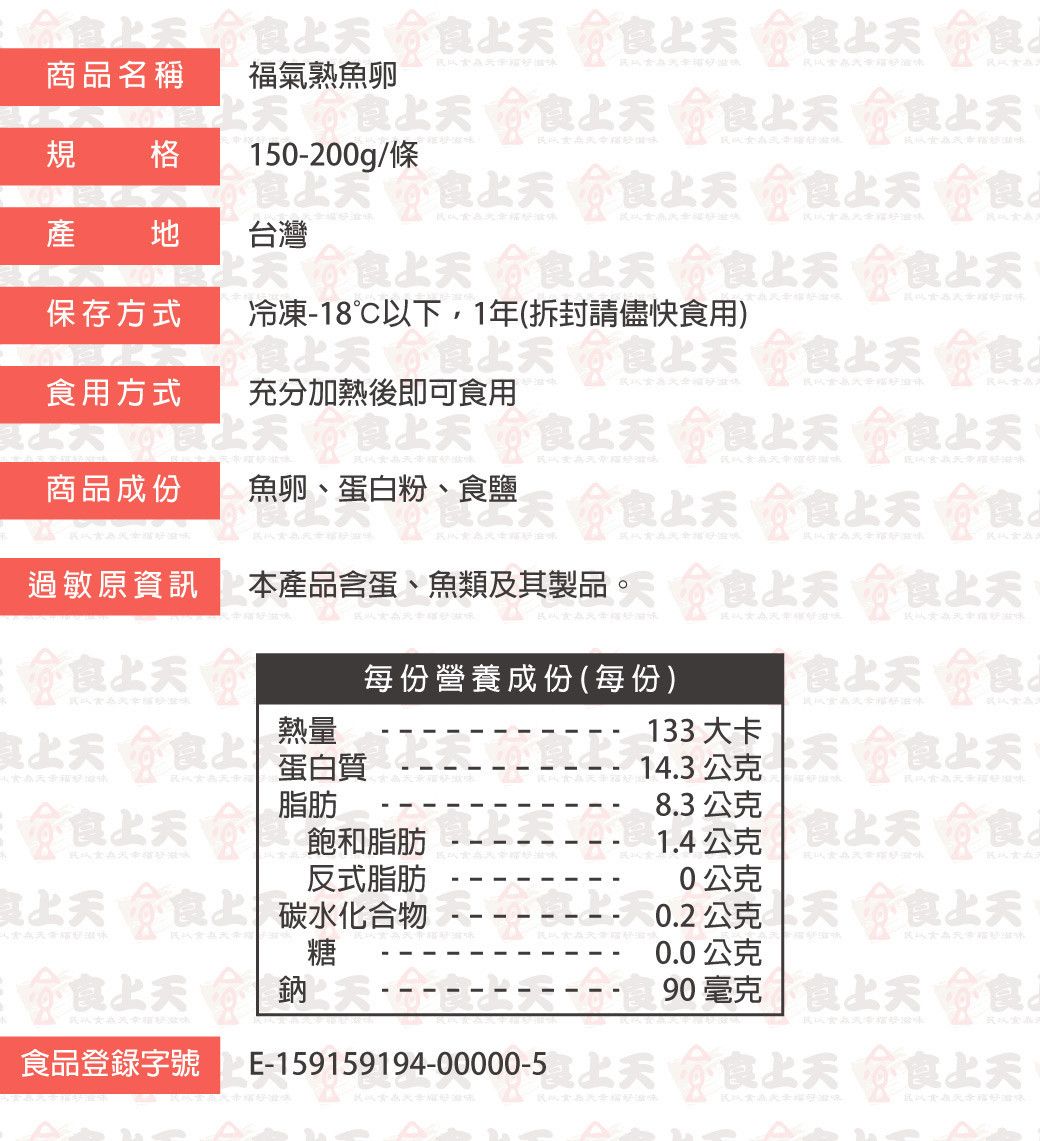 商品詳情 《熟食》料理方式:煎、烤、氣炸、油炸食譜分享:魚卵煎餅 【商品特色】▲粒粒分明、香氣迷人。▲真空包裝,保留新鮮海味。福氣魚不僅是各大速食連鎖最常使用的魚類來源,口感細緻,爽口彈牙,料理也不需要大費周章。食用前日,放置冷藏退冰後中火慢煎至表皮金黃,就可以上菜囉!可以搭配自己的喜好,擠上美乃滋或是胡椒鹽,放置在熱騰騰的白米飯上,香噴噴的福氣魚卵飯就大功告成了 ! 【商品規格】 福氣熟魚卵 TWD $160 TWD $160