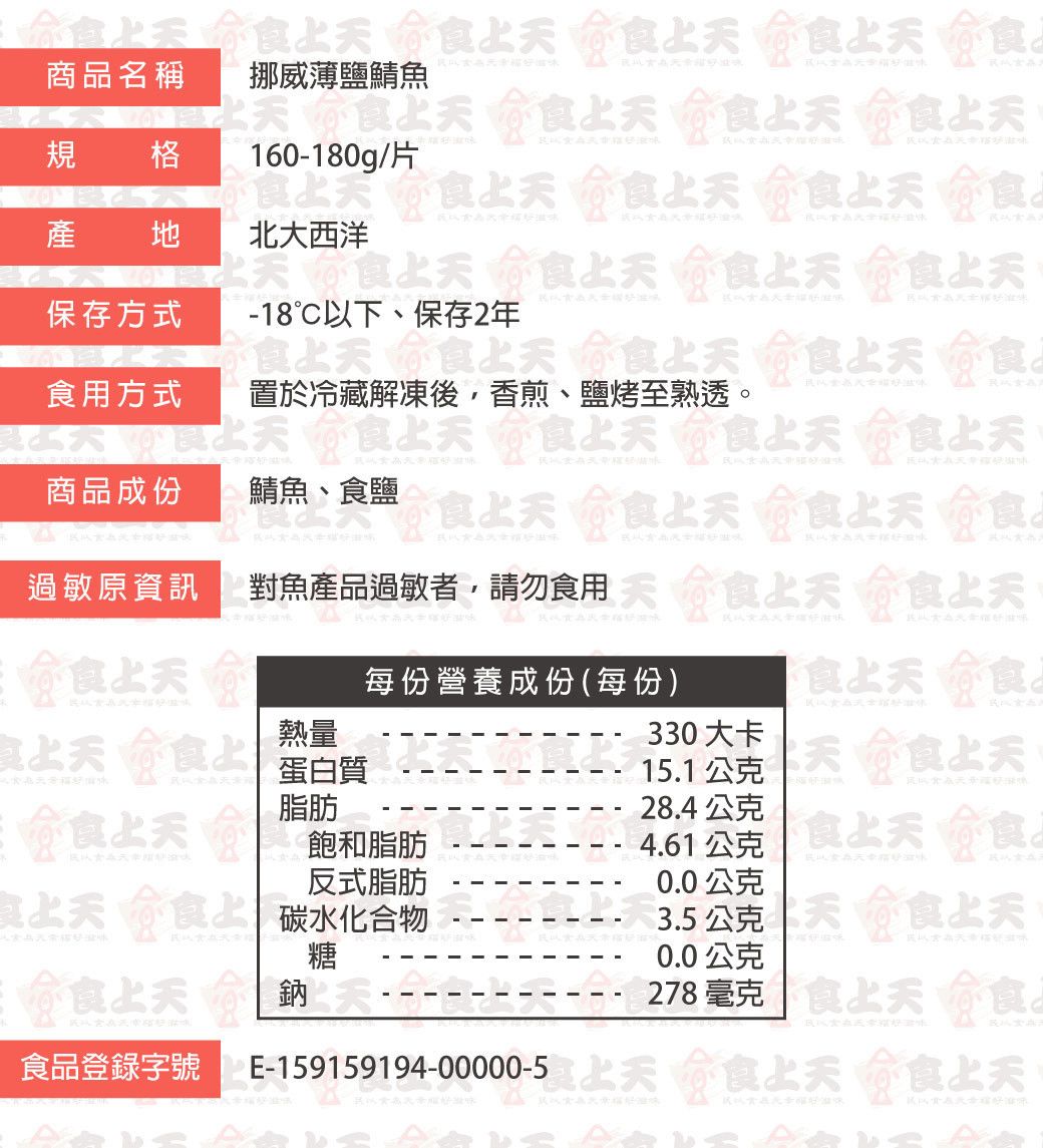 商品詳情 《生鮮》料理方式:煎、烤、蒸、氣炸食譜分享:夏日鯖飲食 【商品特色】🐟挪威極冷海域,為禦寒~身上油脂豐富,香氣細膩,口感滑順不在話下。整條魚去頭去尾去中骨,留下最精華飽滿的中段部位。上桌享用時可再加點檸檬汁,吃起來酸鹹香別有一番風味💖鹹度適中,肉質扎實,肉汁香甜😋😋即是老少咸宜的佳餚品嚐分享💛✔️燒烤✔️香煎✔️氣炸((魚肉內可能含有軟刺,食用時請多加注意)) 【商品規格】 挪威薄鹽鯖魚片 TWD $80 TWD$ 80